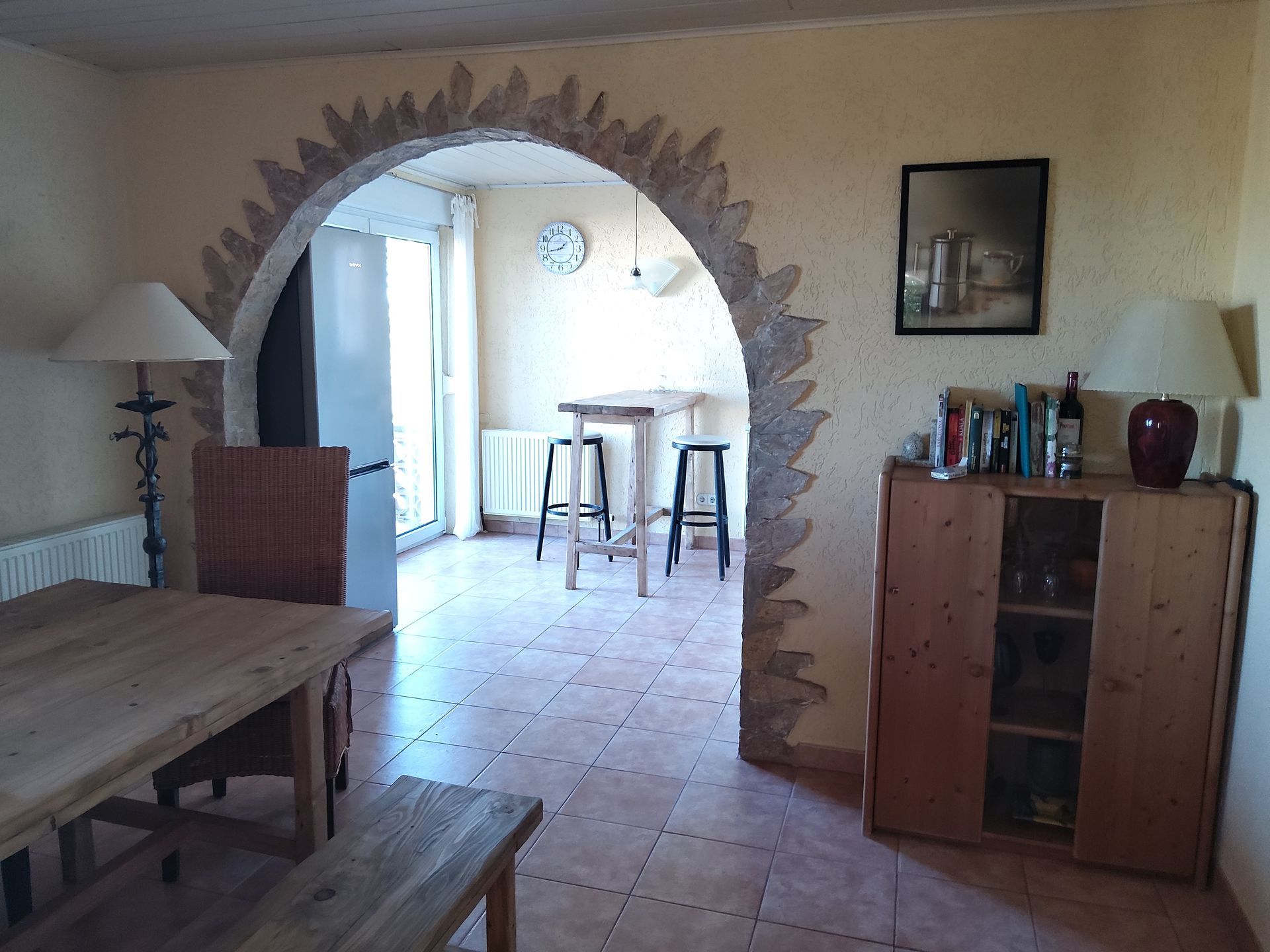 El gran salón con televisión está unido a la cocina y tiene acceso a la terraza con barbacoa y mesa grande. La terraza está parcialmente cubierta y ofrece 60 m² de espacio soleado y sombreado.